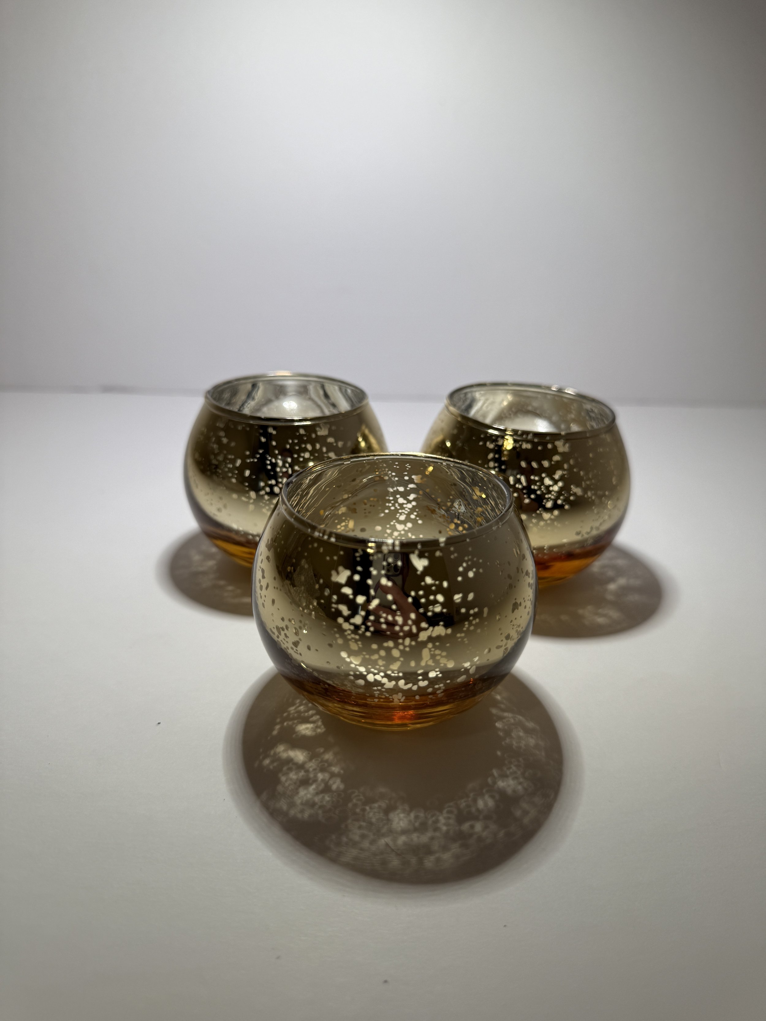 $.50 each. Small gold glass candle holders